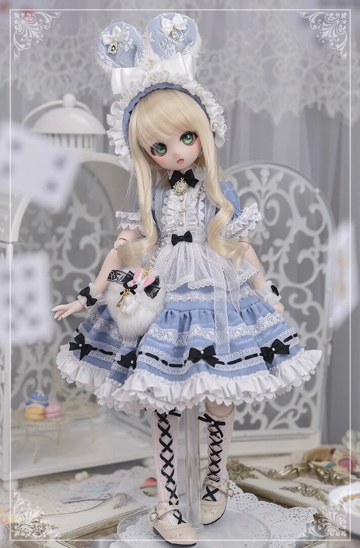 商品内容:ワンピース、エプロン、袖カバー、カチューシャ、兎髪飾り、かばん、靴下